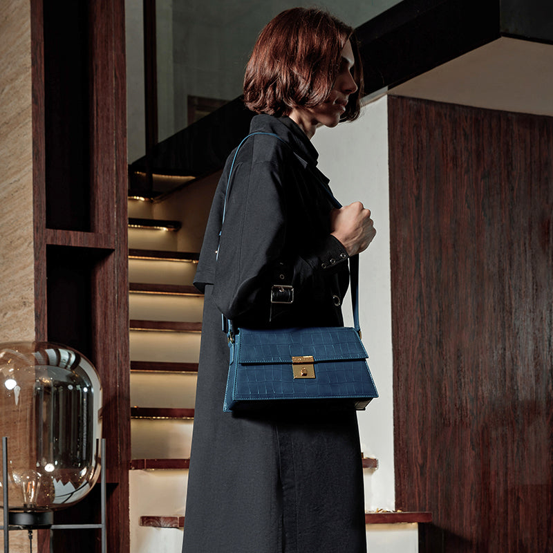 New 2025 Light Luxury Crocodile Pattern Genuine Leather Women's Messenger Bag Commuter Versatile Large Capacity Handbag