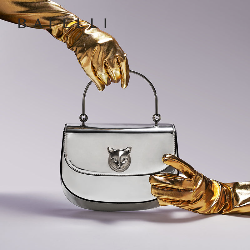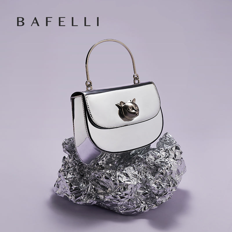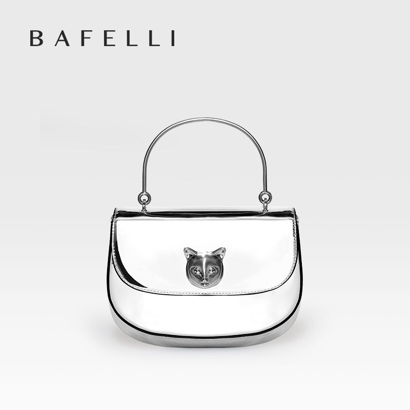 BAFELLI Silver Genuine Leather Saddle Bag Crossbody Tote - Luxury Commuter Bag for Women, Versatile Fashion Handbag